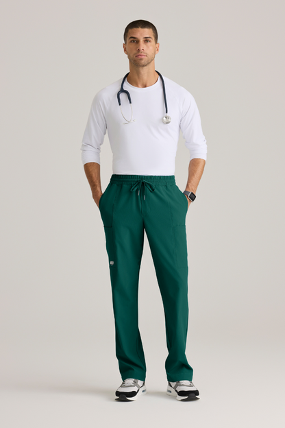 The Horizon Scrub Pant offers all-day comfort with a slim straight fit, elastic waistband with drawcord, five functional pockets, and eco-friendly, moisture-wicking 4-way stretch fabric.